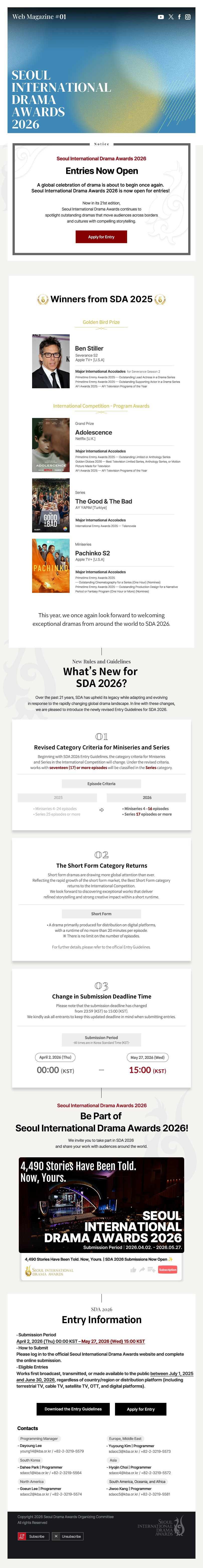 [SDA 2026 #1] Entries Are Now Open for Seoul International Drama Awards 2026! Admin 2026-04-02 Views 114 :::::: Welcom to Seoul International Drama Awards 2025:::::: Next[SDA 2025 #7] Drama Festa: Coloring Seoul’s Autumn with Drama List